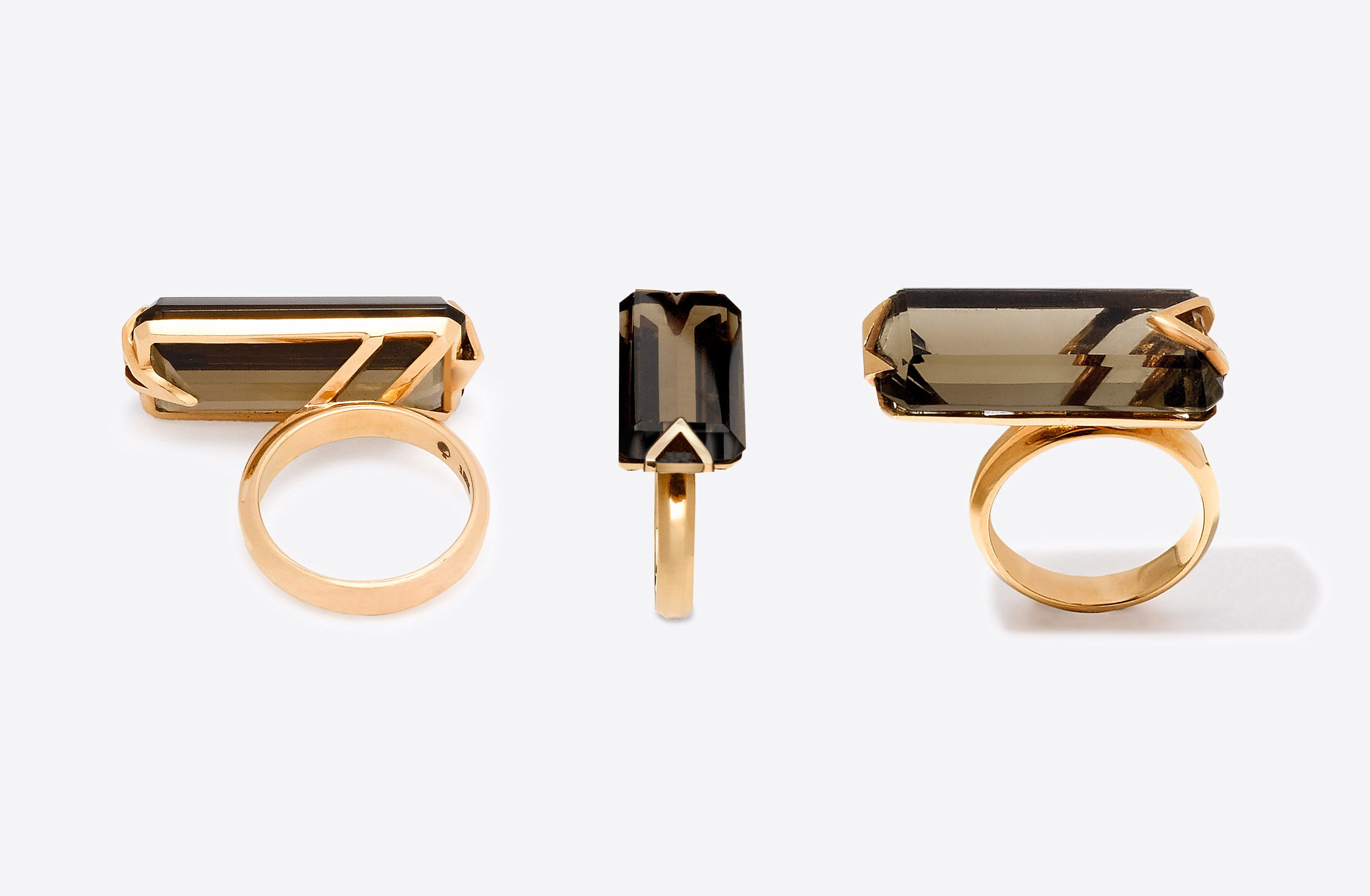 BAGUETTE SMOKY QUARTZ TRIANGLE RING HAND-CRAFTED IN LONDON