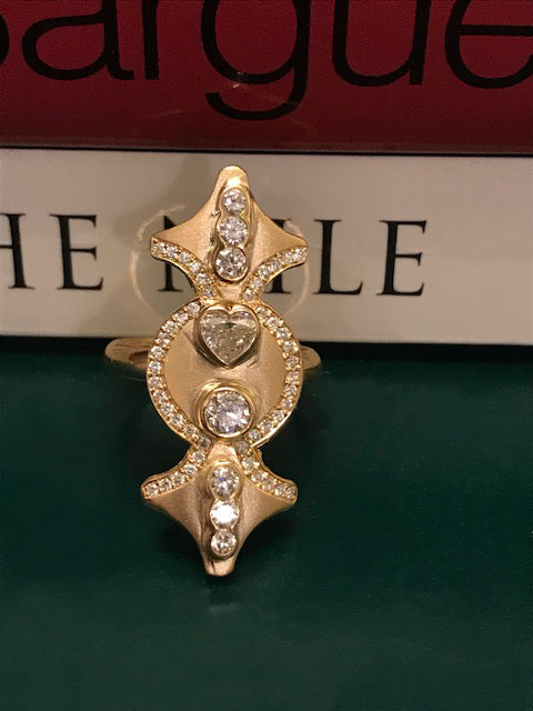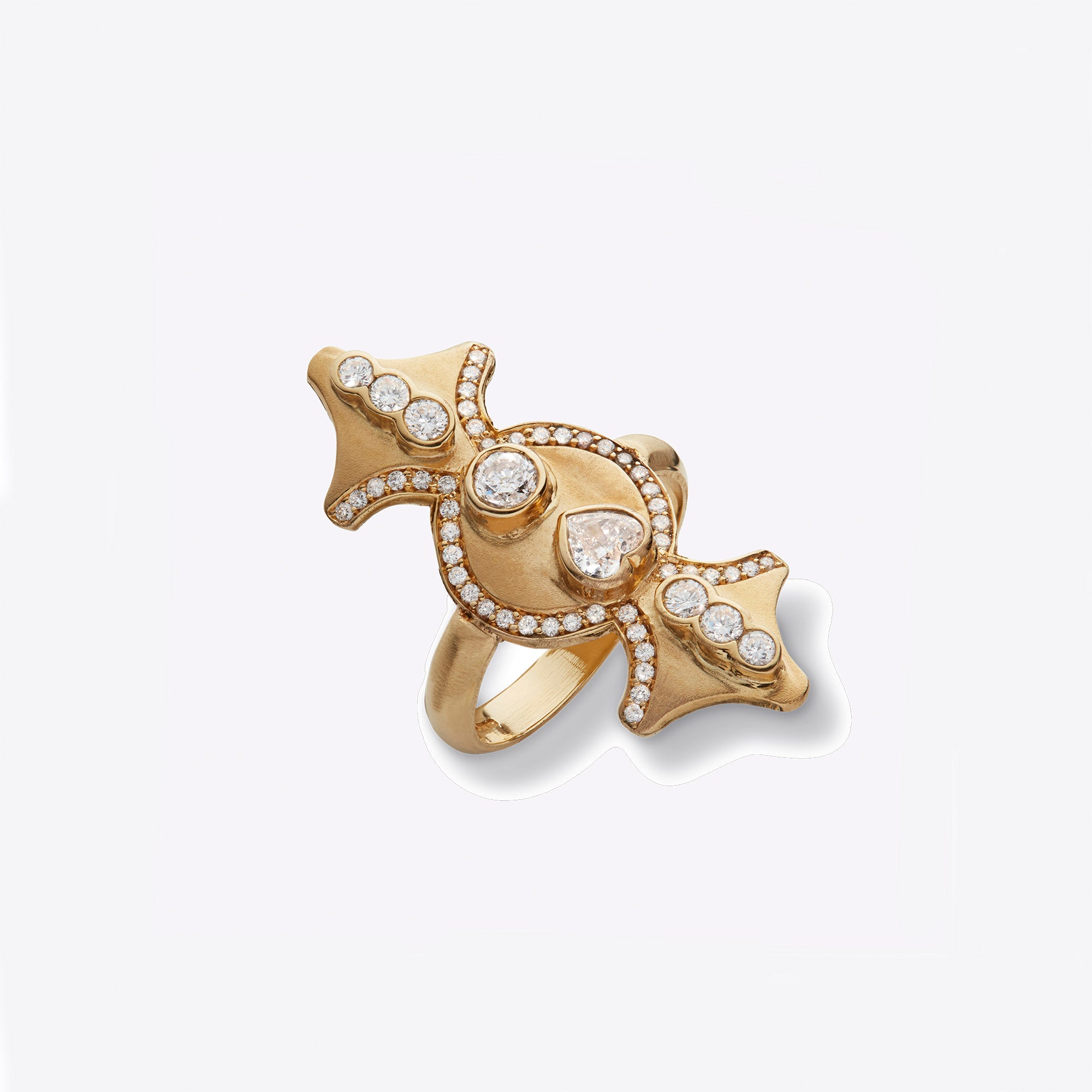 Two people come together... They are pierced by Cupid's arrow, ablaze with pave diamonds.