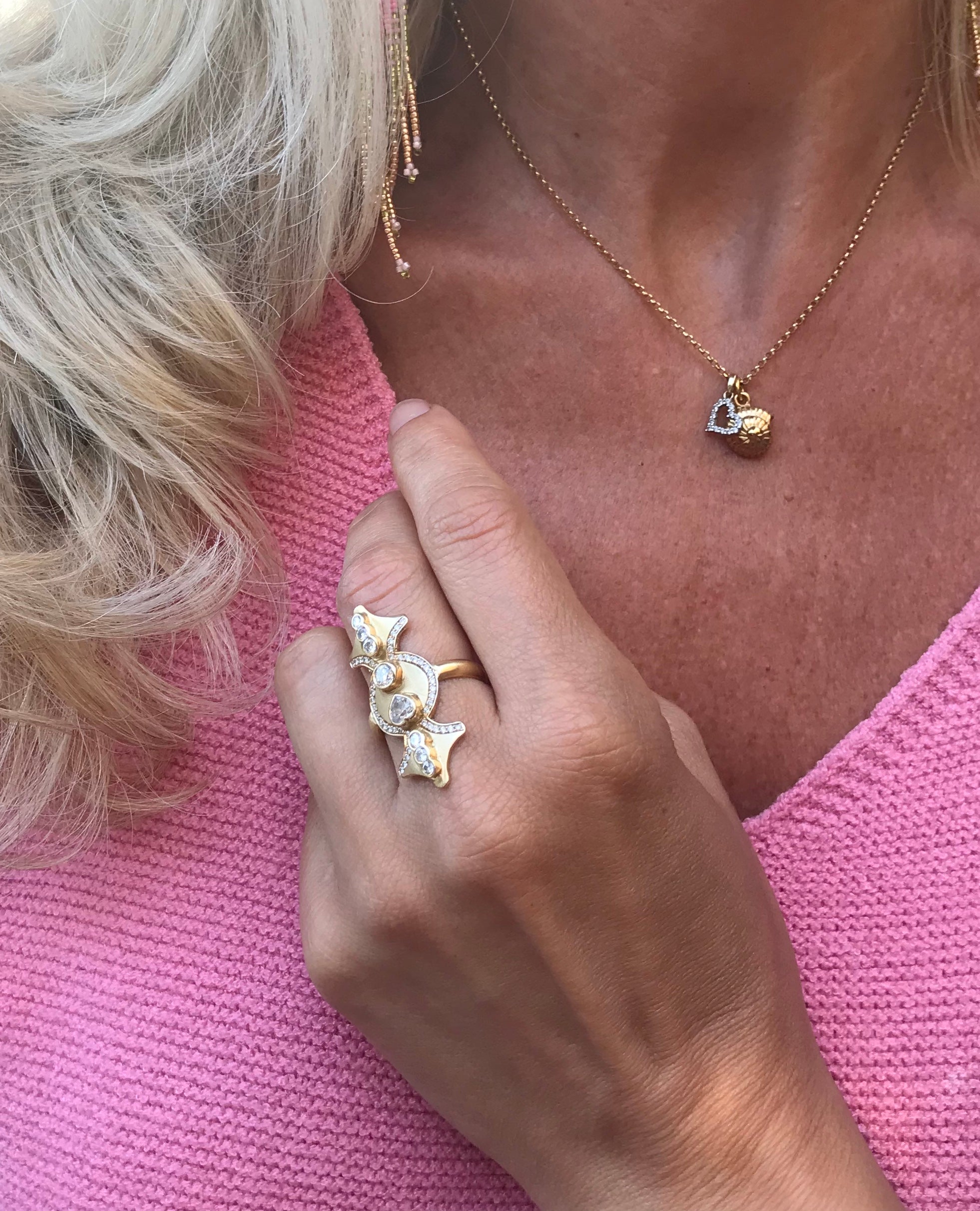 She wanted to make a ring that expressed her edgy style while celebrating finding her true love