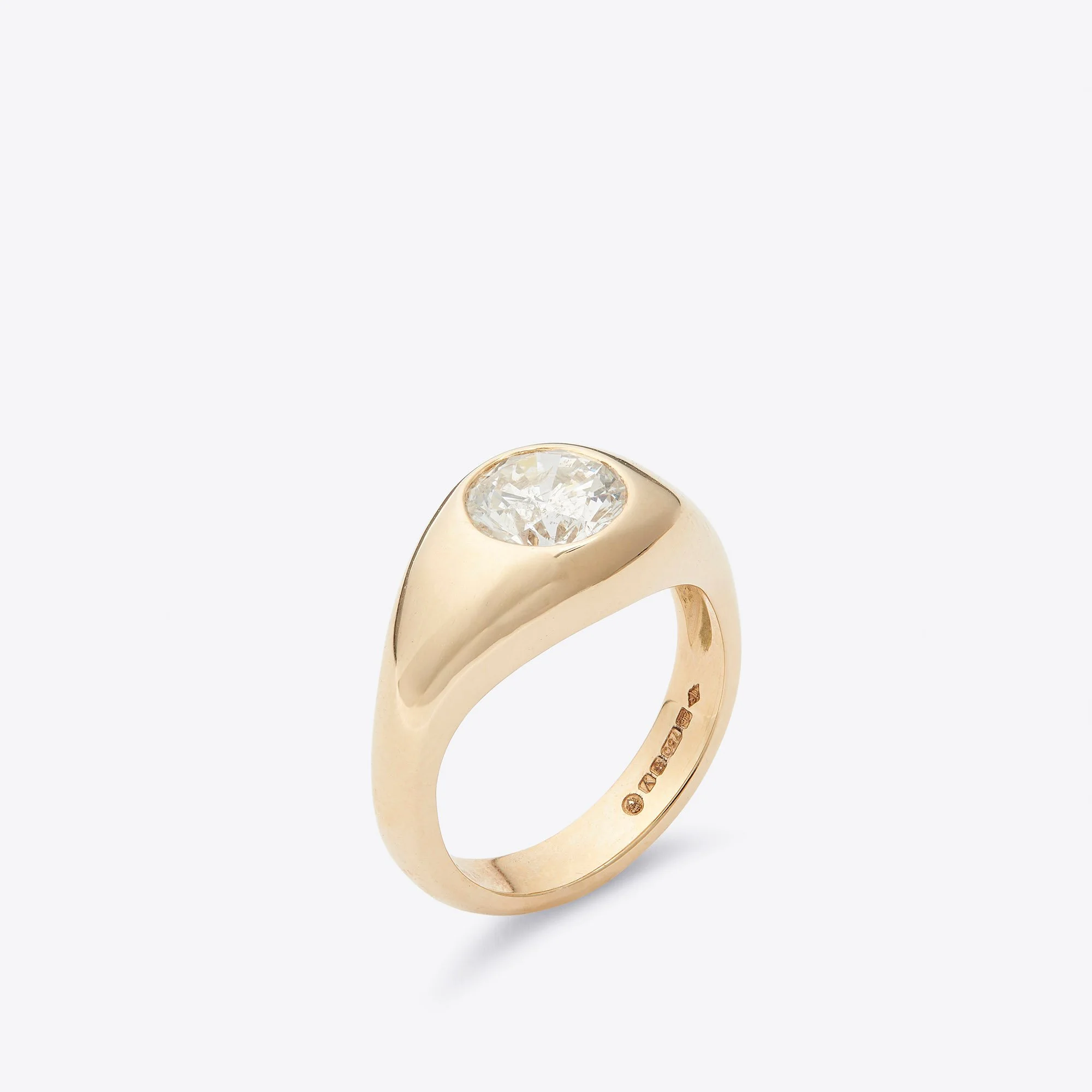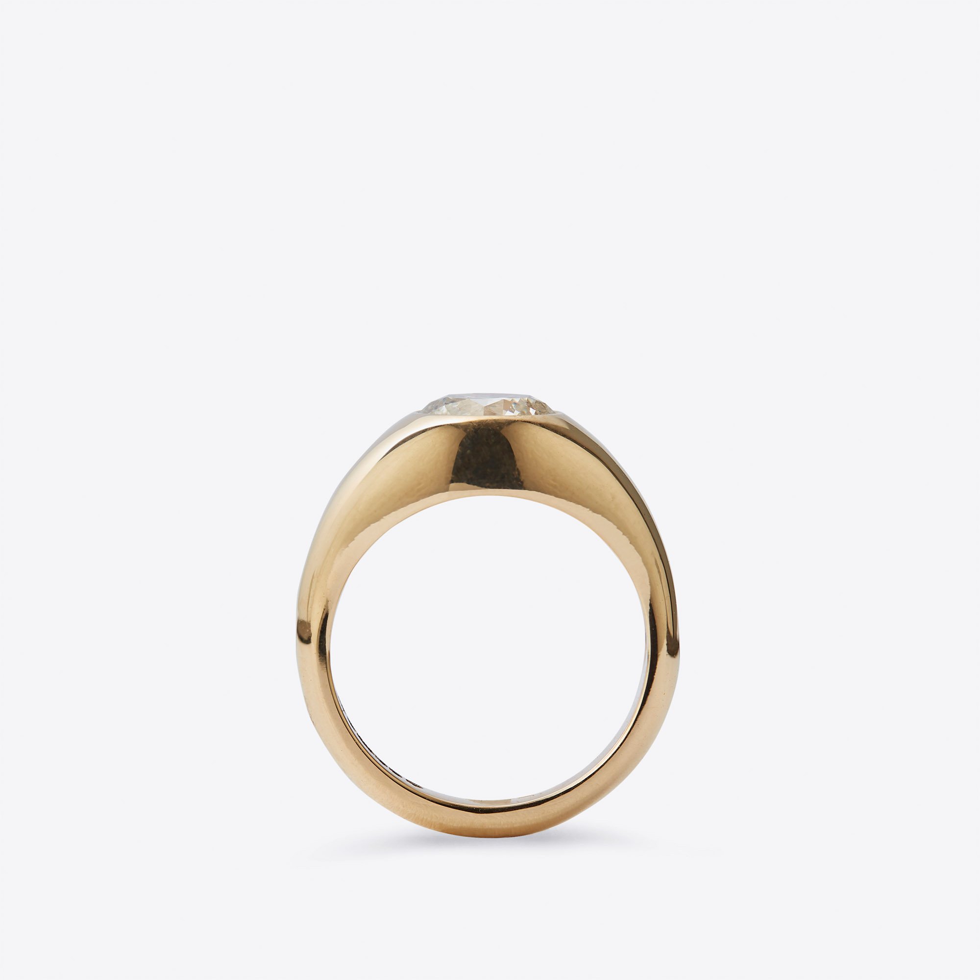 Forged in lustrous 18k gold, the bold solitaire marries weight with elegance. Every curve and angle is meticulously sculpted, letting the central diamond command attention with quiet authority. contemporary heirloom